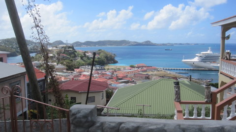 Highlight des Tages ist eine Tour durch Grenada. Auch diesmal haben wir uns dazu entschlossen, das überteuerte Angebot von TUI (89.- Euro pro Person) zu ignorieren und stattdessen auf eigene Faust die Insel zu erobern. Haben die Engländer, Russen, Amerikaner etc. ja auch nicht anders gemacht. Um an Land zu kommen, müssen wir diesmal aber „tendern“, wie der Fachmann sagt. Unser Schaluppe ist nämlich zu groß, um ganz vorne im Hafen anlegen zu können. Achteinhalb Meter Tiefgang hat der Kahn, einen halben Meter zu viel für den letzten noch freien Ankerplatz im Hafen. Die anderen Kolosse waren nämlich schneller – drei weitere Kreuzfahrtschiffe spucken bereits in großem Bogen Passagiere aus ihren Bäuchen. Die Übersetzung an Land, also das besagte „Tendern“ wird mit ein paar der vielen Rettungsboote, die unser Schiff hat, bewerkstelligt. So lernen wir unsere Lebensretter in einem etwaigen Notfall auch mal von innen kennen. Sehr ordentliche Boote, die sogar Ruder an Bord haben, falls der Motor schlapp macht. Die Überfahrt dauert zwanzig Minuten und bringt uns in den Hafen von Grenada, Georgetown. Schnell finden sich 15 Leute zusammen, die für 20.- US-Dollar pro Person von unserem eingeborenen Tourguide GLENN die spannenden News der Insel aufsaugen. Das größte Drama von Grenada war ein verheerender Hurrikane im Jahr 2004, der 90% aller Häuser der Insel dem Erdbeben gleich machte. Auf unserer Tour haben wir einige Ruinen gesehen, bei denen nur noch das Bad und die Toilette übrig geblieben waren, weil dies die beiden einzigen Räume aus Beton waren. Alles, was aus Holz war, ist weg geflogen. Erstaunlicherweise wurde die Insel – mit viel Geld der internationalen Staatengemeinschaft – wieder fast vollständig aufgebaut. Unser Fahrer erinnerte auch an den Krieg, bei dem die USA (war es 1984?) das Land von den Russen befreit hat. 2000 Jungs sind da an einem Tag gestorben. Ein paar hundert Jahre vorher, als die Engländer mit Kanonen auf Macheten zielten, waren das noch ein paar mehr. Um der Sklaverei zu entgehen, stürzten sich die Überlebenden wie die Lemminge von einem hohen Felsen in die Tiefe. Inzwischen ist Grenada unabhängig und selbstständig, was man sofort an der befreienden, lockeren Lebensweise der Bewohner merkt. Hier fließt fast ausschließlich karibisches Blut in den Adern – und das hat es in sich. Die Wirtschaft brummt, vor allem durch den Verkauf von Gewürzen und Rum. Und so ist die Vorstellung der inseltypischen Gewürze auch Teil des Ausflugsprogramms. Wir kaufen dann gleich mal einen Jahresvorrat ein. Weiter geht es zu einem Wasserfall, an dem sich mutige junge Männer – gegen Dollars – vom Felsen ins Wasser stürzen. Wir sehen Männer mit Äffchen auf der Schulter, Gürteltieren im Arm oder Riesengeckos am Armband. Frauen tanzen und singen, obwohl sie einen Riesenhut voller Bananen und anderen Früchten auf dem Schädel balancieren. Die Gewürzhändler verfolgen uns an jeder Station, an der wir halt machen. Alle wollen unser Bestes – den Dollar. Und weil alle gut drauf sind, verdienen die eigentlich bemitleidenswerten Folkloredarsteller reichlich viel davon. Was langfristig dazu führt, dass irgendwann gar niemand mehr arbeitet. Die Geschäfte sind jedenfalls alle zu, was aber wohl eher mit dem heutigen Wochentag, dem Sonntag zusammenhängt.