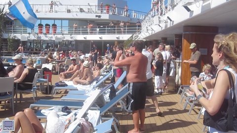 Heute sind wir wiedermal den ganzen Tag auf dem Schiff mit dem dämlichen Namen „Mein Schiff“. Die Reise von Guadeloupe nach La Romana dauert knapp 36 Stunden. Es ist zwar warm, aber meistens bewölkt. Die Crew gibt sich redlich und erfolgreich Mühe, die Gäste bei Laune zu halten. Alle paar Minuten gibt es irgendwo was zu Trinken oder zu Essen und die üblichen Kapellen dudeln ihre Musik runter. Im „Konferenzraum“ wird heute Abend eine DVD vorgeführt, auf der die bisherige Reise von einem Profiteam festgehalten wurde. 67.- Euro kostet das Unikat und ich überlege mir ernsthaft, das Werk zu kaufen. Aber natürlich erst am Ende der nächsten Woche.