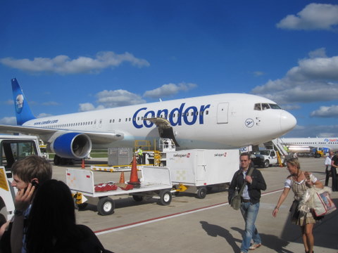 Lange nach dem Start werde ich wieder wach. Ich muss wohl zwischendurch auch irgendwie irgendwas gemacht haben, aber ich kann mich nicht daran erinnern. An Bord der Condor-Maschine sitzen wir zu zweit in Reihe zwanzig direkt neben der Toilette, was zu netten Beobachtungen führt, die ich hier besser nicht ausführen möchte. Der Flug ist unglaublich ruhig – nur eine einzige ganz kurze Turbolenz lässt meinen Blutdruck hochjagen. Anders als früher, als Kopfhörer in Flugzeugen noch über Luftröhren gespeist wurden, damit die Paxe die Dinger nicht mitnehmen, schenkt uns TUI heute großzügig ein Paar recht brauchbarer Ohrkapseln, mit denen man das sogenannte „Inflight-Entertainment“ genießen soll. Die Dinger zu putzen und den Gästen neu anzudrehen, ist wohl teurer. Akustisch sind bei unserem Flug die üblichen Hit-Compilations aller Musikrichtungen angesagt sowie ein „Comedy-Kanal“, bei dem unter Anderen Mario Barth und Loriot einen nicht ganz harmonischen Mix darstellen. Spätestens bei Paul Panzer schalte ich ab. Die beiden Filme und das Rahmenprogramm wollen wir auch nicht sehen, obwohl ICE AGE 3 gezeigt wird. Aber in diesen reduzierten, an den Rändern auf das 4:3-Format reduzierten Spezial- Flugfassungen macht das Zuschauen einfach keinen Spaß. Also hole ich das iPhone aus der Tasche und wir spielen eine Portion „GEORIFIC“. Kennt keiner? Das ist so eine Art Geographiequiz. Man muss beispielsweise folgende Frage beantworten: „Wo fanden 2004 die Olympischen Winterspiele statt?“. Klingt sehr einfach, aber man muss zur Beantwortung auf einer Landkarte den richtigen Ort markieren. Und da zeigen sich üble Lücken!!! Außer bei Daggi. Die ist ja einige Jahre als Stewardess um die Welt geflogen und hat – anders als andere Blondinen – durchaus aufgepasst, wo sie sich befindet. Je nach Entfernung zum korrekten Ziel werden Strafpunkte vergeben. Wer zuerst 8000 km daneben liegt, hat verloren. Kurzum: Ein Spiel, bei dem ich nicht gewinnen kann, das ich aber um so lieber spiele, weil ich dabei sehr viel lernen kann.