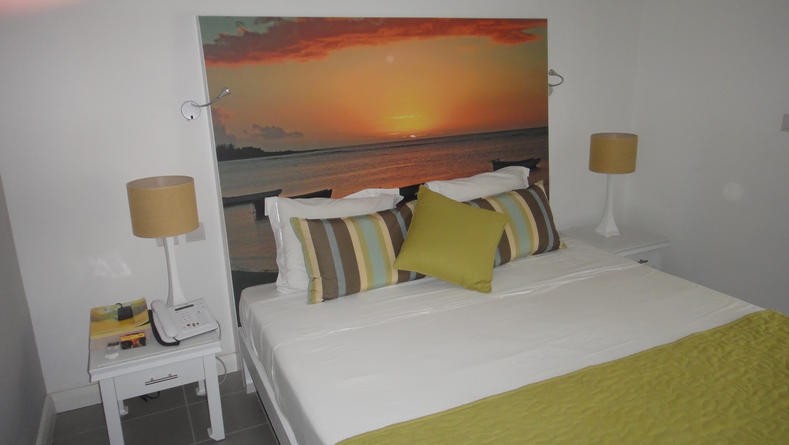Nun habe ich die große Auswahl. Lesen, Baden, Faulenzen, Sport treiben, Fernsehen (in der Lobby) oder Spazierengehen (Grand Baie ist zu Fuß erreichbar). Außerdem treibt sich draußen ein Glasbottomboot rum, man kann Wasserski fahren oder segeln. Als Erstes werde ich wohl mal wieder eine Stunde Internet ordern, um die neuen Blogs unterzubringen, meine aktuellen Mails abzuholen und eventuell ein paar Jobs zu erledigen. Das Apartment eignet sich recht gut für Sprachaufnahmen, wenn man sie im Bett macht. Ich denke da an einen Lernkurs für Microsoft Office, dessen hunderte von Einzeldateien ihrer Erledigung, sprich Sprachaufnahme entgegensehen. Nee, besser nicht. Ich bin doch im Urlaub, was immer das bedeutet. In zehn Minuten läuft Dagmar in der Friedrichsdorfer Stadtverwaltung auf. Ich bin gespannt wie ein Flitzebogen, ob unsere flexible Verwaltung in der Lage sein wird, Daggi einen provisorischen Pass auszustellen, der ihr die Einreise in dieses Paradies auf Erden ermöglicht.