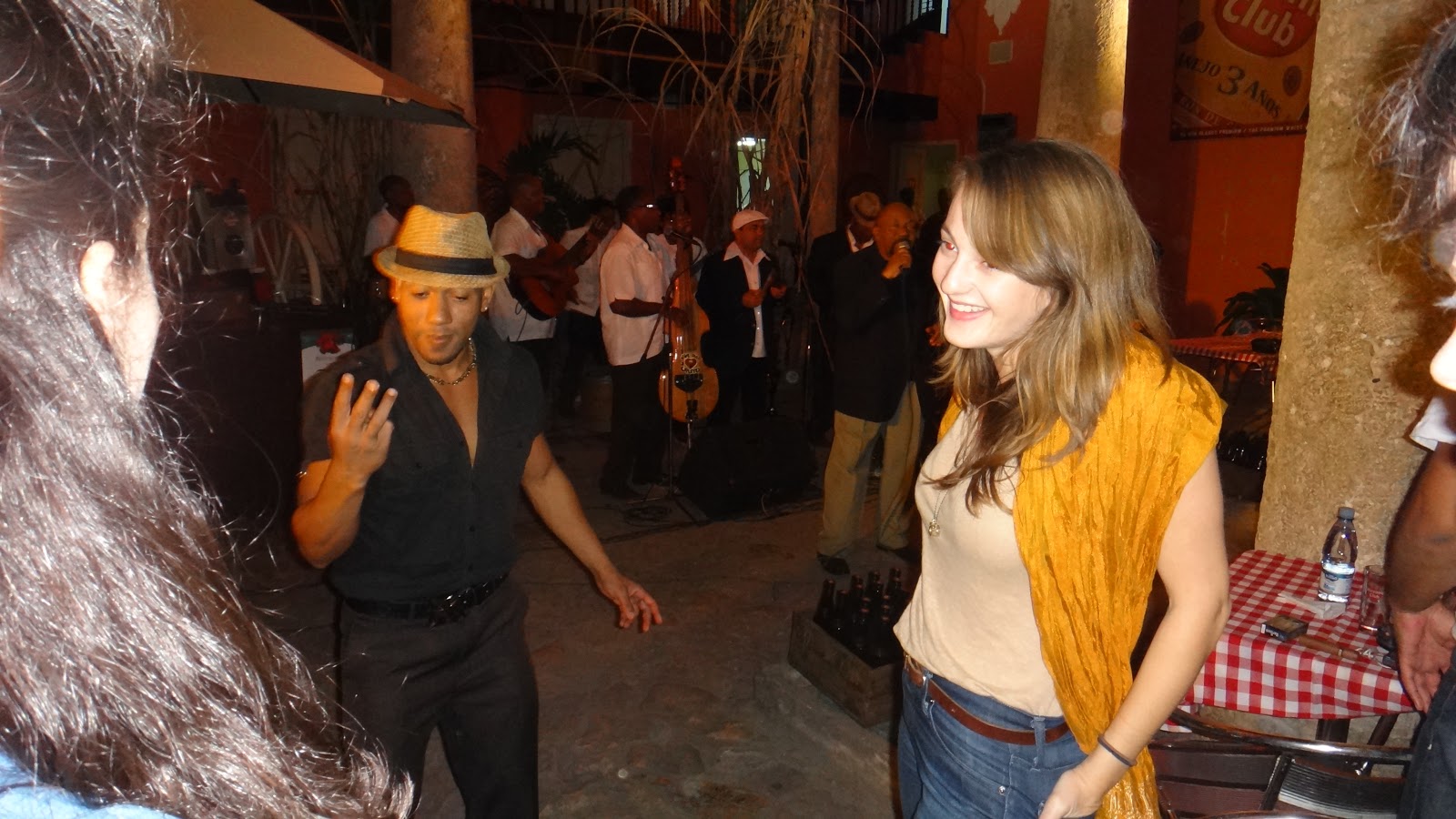 Zusätzlich zu den 13 Krachmachern kamen dann noch eine schwarzhaarige junge Tänzerin, eine uralte Buena Vista-Vorzeigedame aus den dreißiger Jahren und ein angeblich berühmter Saxofonist, der insgesamt drei Titel spielte. Anscheinend wird Musik nicht von allen gleich empfunden. Die beiden russisch besetzten Nachbartische hatten jedenfalls prachtvolle Stimmung, tanzten ständig mit und nahmen die meisten Szenen auf Video auf, indem sie ihre iPads in die Luft hielten und auf die Tänzer hielten, was ziemlich doof aussah. An jedem Tisch habe ich mindestens drei iPads und eine vollständige Ausstattung mit iPhones 5 gezählt.